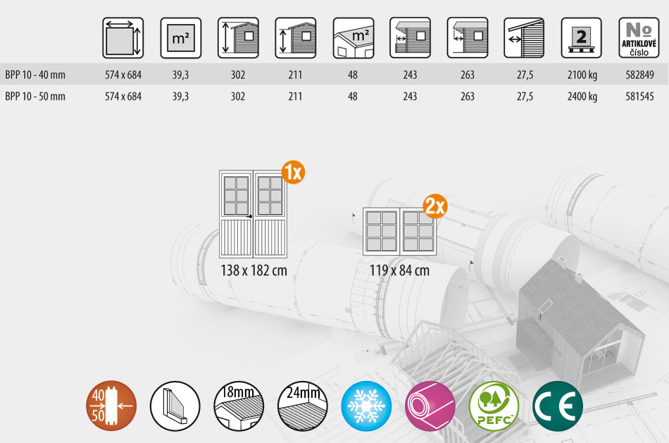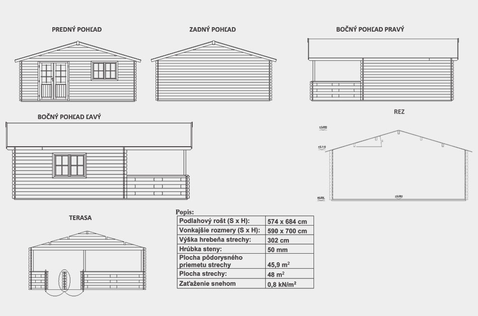 Súčasťou všetkých chatiek je drevená podlaha, okná a dvere sú so sklenenou výplňou hrúbky 3 mm.